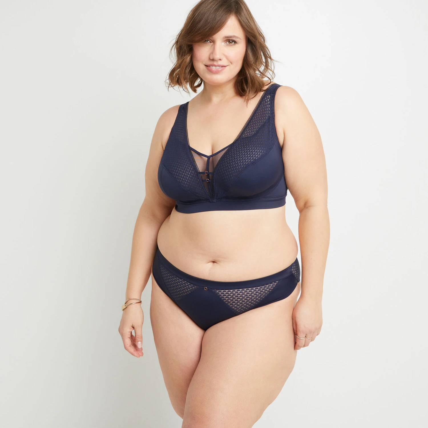 Le nouveau concept « Courbe + » est pensé spécifiquement pour les morphologies généreuses. Hauts et bas sont parfaitement conçus pour les grandes tailles afin de vous offrir maintien, bien-être et féminité. Différents styles, formes et matières sont travaillés pour répondre à toutes vos envies de lingerie et de tendance.