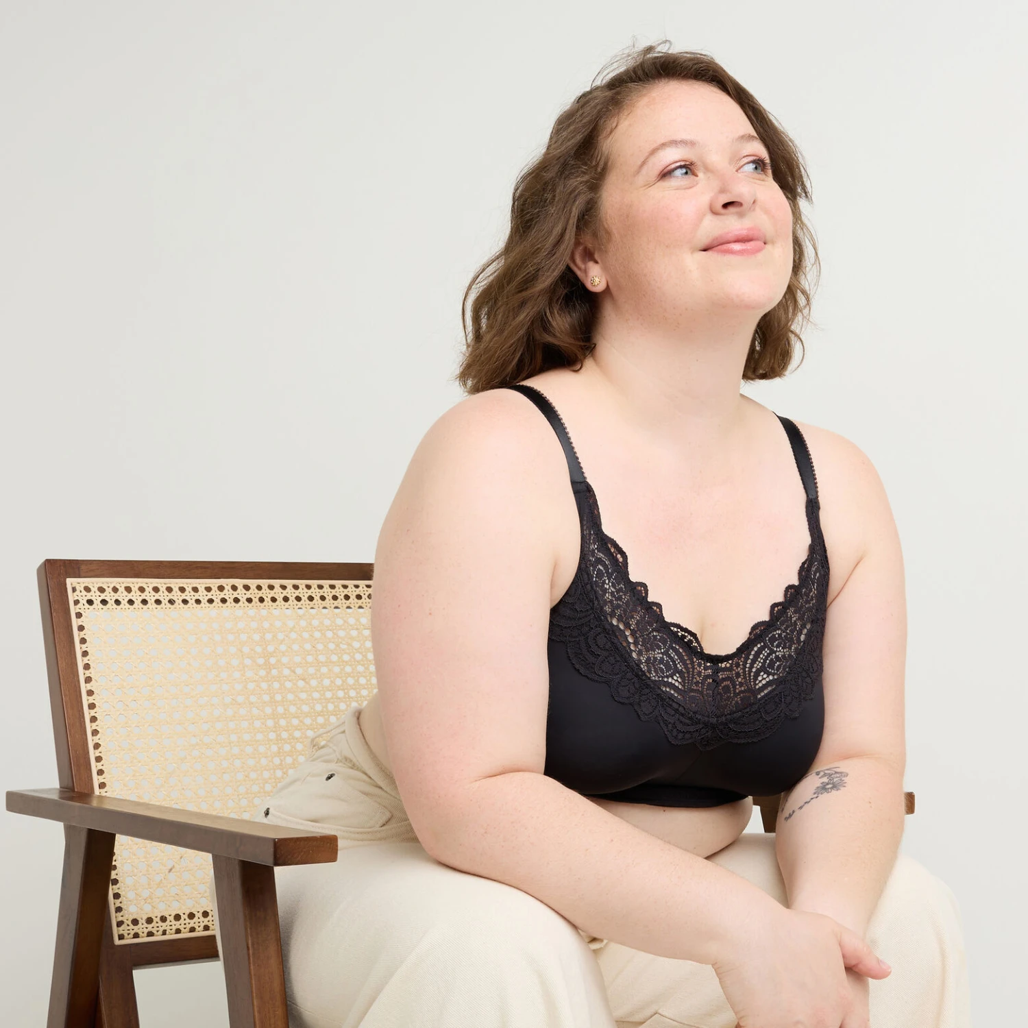 « Les équipes RougeGorge soutiennent la lutte contre le cancer du sein. Cet engagement nous a permis de co-créer avec nos clientes concernées, des soutiens-gorge post-opératoires spécialement étudiés pour les femmes ayant eu une mastectomie totale ou partielle. Doux et couvrants, ils masquent les cicatrices et sont comme une caresse sur la peau. Sans armatures, élastiqués sous la basque, ils offrent un confort absolu. A l’intérieur, la doublure moelleuse en coton est sans pince pour éviter les frottements désagréables. Elle permet aussi de placer discrètement des prothèses mammaires. » – Modèle DENTELLE emblématique chez RougeGorge – Forme brassière – Microfibre lisse et ultra confort – Décolleté souligné de dentelle ajourée et festonnée – Large bande élastiquée sous les seins – Sans armatures – Bretelles élastiquées et ajustables dans le dos, bouclerie ton sur ton – Dos entièrement conçu en microfibre unie, signature RougeGorge en lettres dorées – Fermeture dos par agrafes.