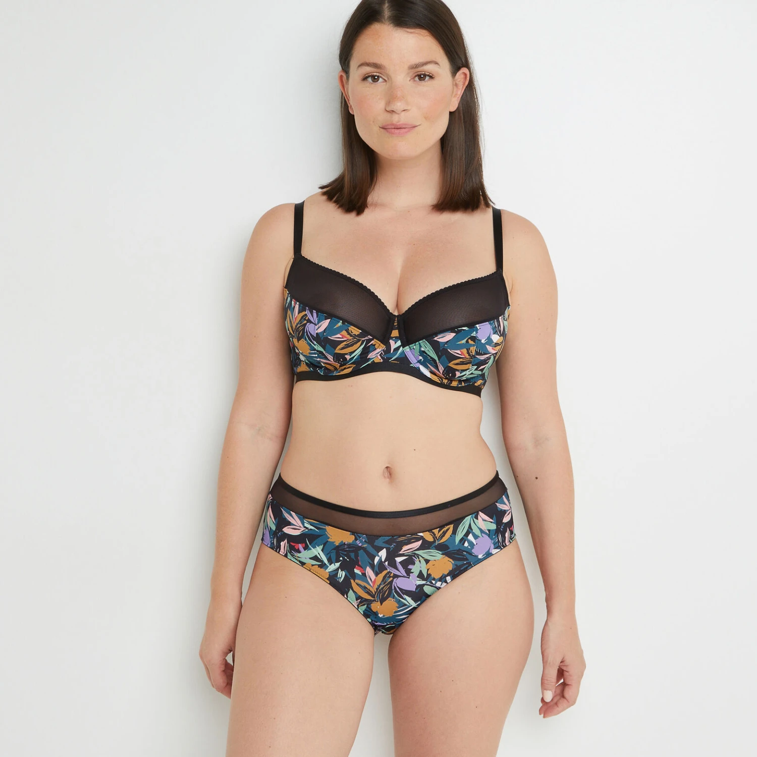 Tulle: 84% POLYAMIDE 16% ELASTHANNE Fond interieur: 100% COTON BIOLOGIQUE Microfibre: 80% POLYAMIDE 20% ELASTHANNE