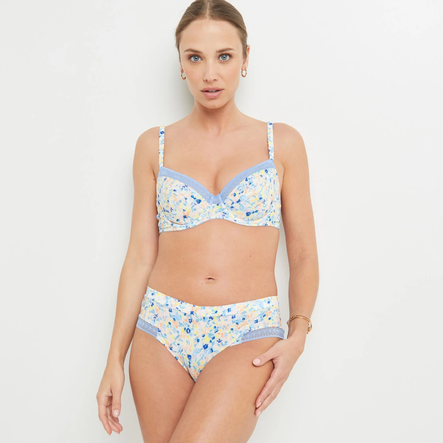 « Une inspiration bucolique légère et pétillante, rehaussée d’une charmante dentelle colorée à la trame ultra graphique… Joliment coordonnées à la ligne de nuit Beach, les parures BLABLA expriment une féminité à la fois sage et exubérante. »