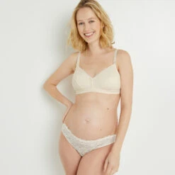 « Confort, douceur et une touche de fantaisie : le soutien-gorge grossesse DENTELLE a tout ce dont on a envie pour partager les premiers moments avec bébé. » – Bonnets en dentelle festonnée le long du décolleté – Joli noeud à l’entre-seins – Bretelles fantaisie bordées de très fine dentelle devant, clipsées pour dégrafer les bonnets d’une seule main et faciliter l’allaitement : ultra pratique – Bonnets doublés pour ne pas blesser les tétons, et basque élastiquée pour le maintien des seins en douceur – Sans armatures – Large bande de confort élastiquée sous les seins, sur tout le tour – Fermeture dos par agrafes 2 crochets 4 rangs pour s’adapter aux changements de taille – Bretelles ajustables dans le dos – Bouclerie ton sur ton.