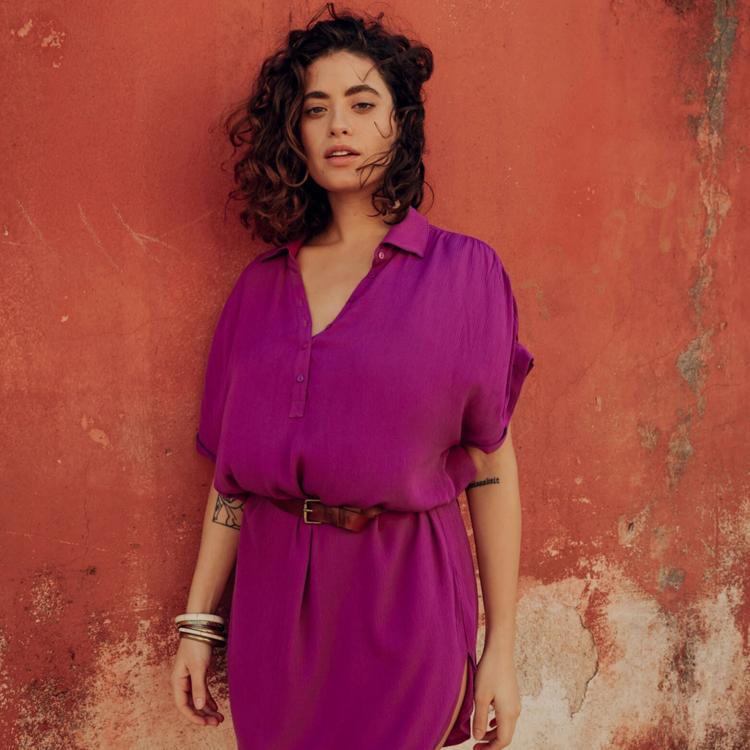 « Un véritable petit bonheur d’été à porter à la plage, au saut du lit… ou quand vous souhaitez… A choisir dans la ou les couleurs qui vous font de l’oeil. On est fans de cette viscose respirante, produite à partir de fibre de bois des forêts durables, fluide et douce comme la soie. »