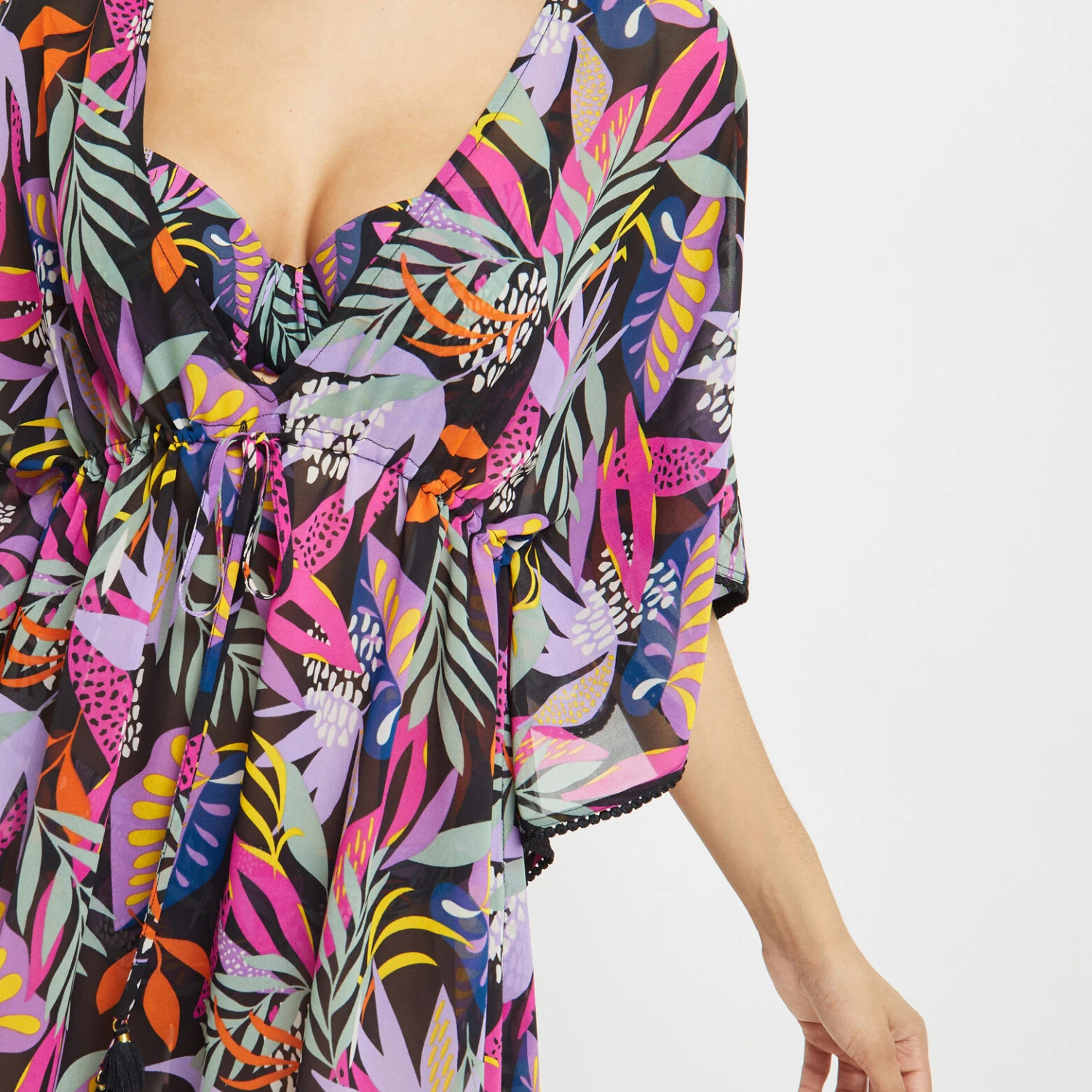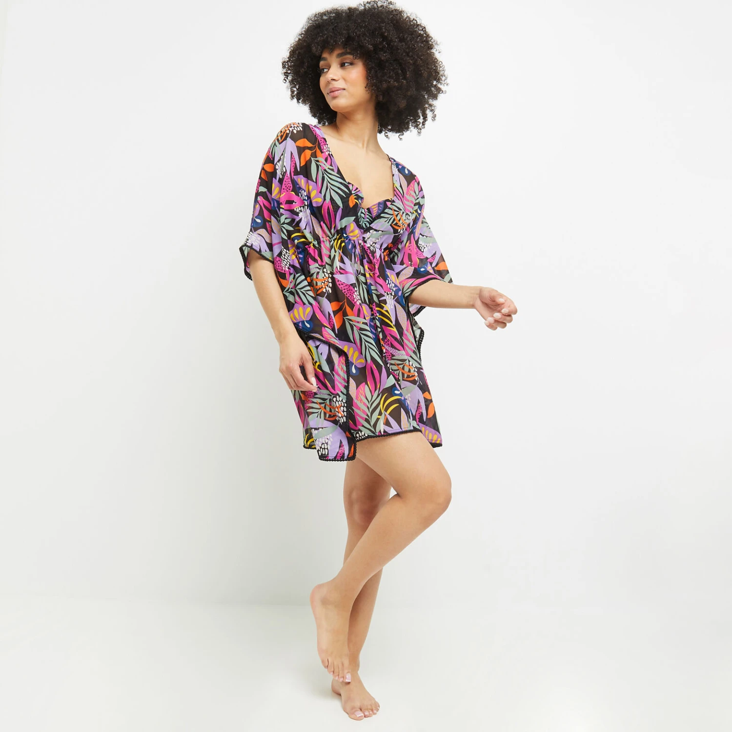 « Un motif coloré, foisonnant de motifs végétaux joyeusement stylisés, s’épanouit sur la ligne de bain LAVANDE. Vous y trouverez toutes les formes de maillots : plus ou moins échancrés ou couvrants, pour toutes les morphologies, et même de jolis paréo et tunique assortis. »